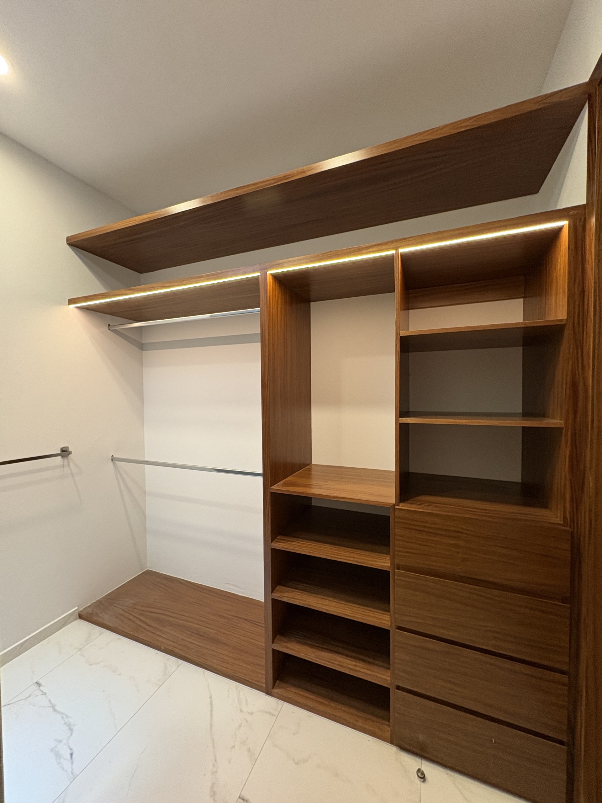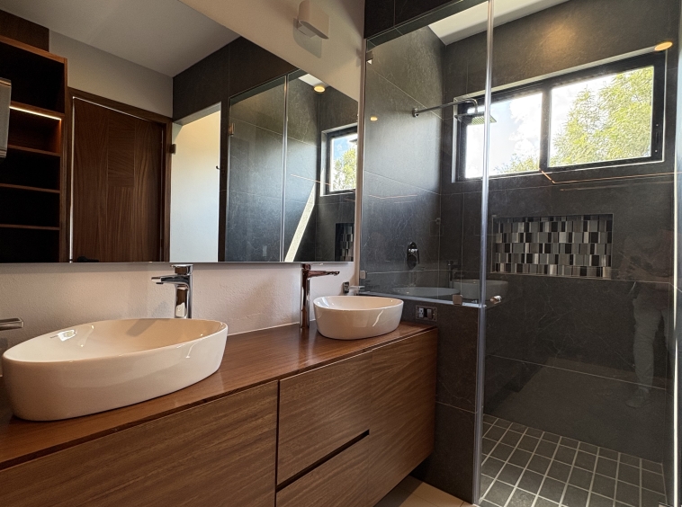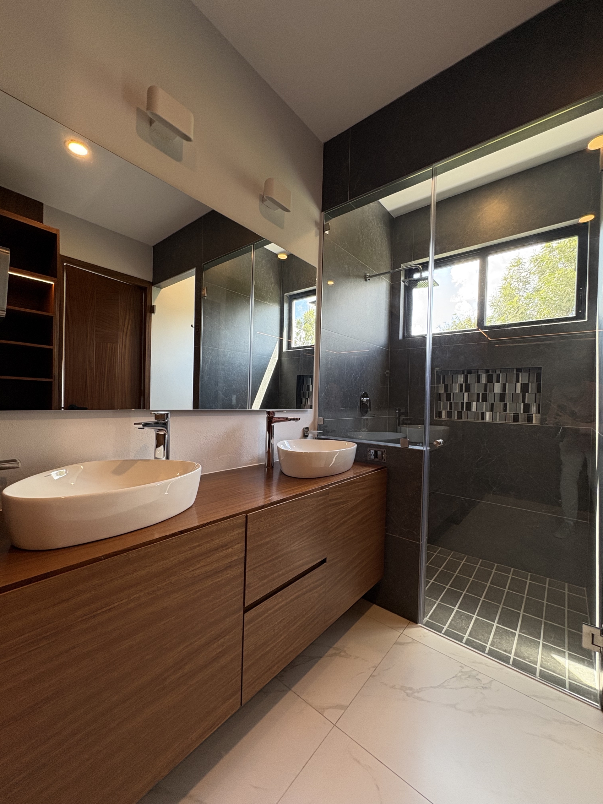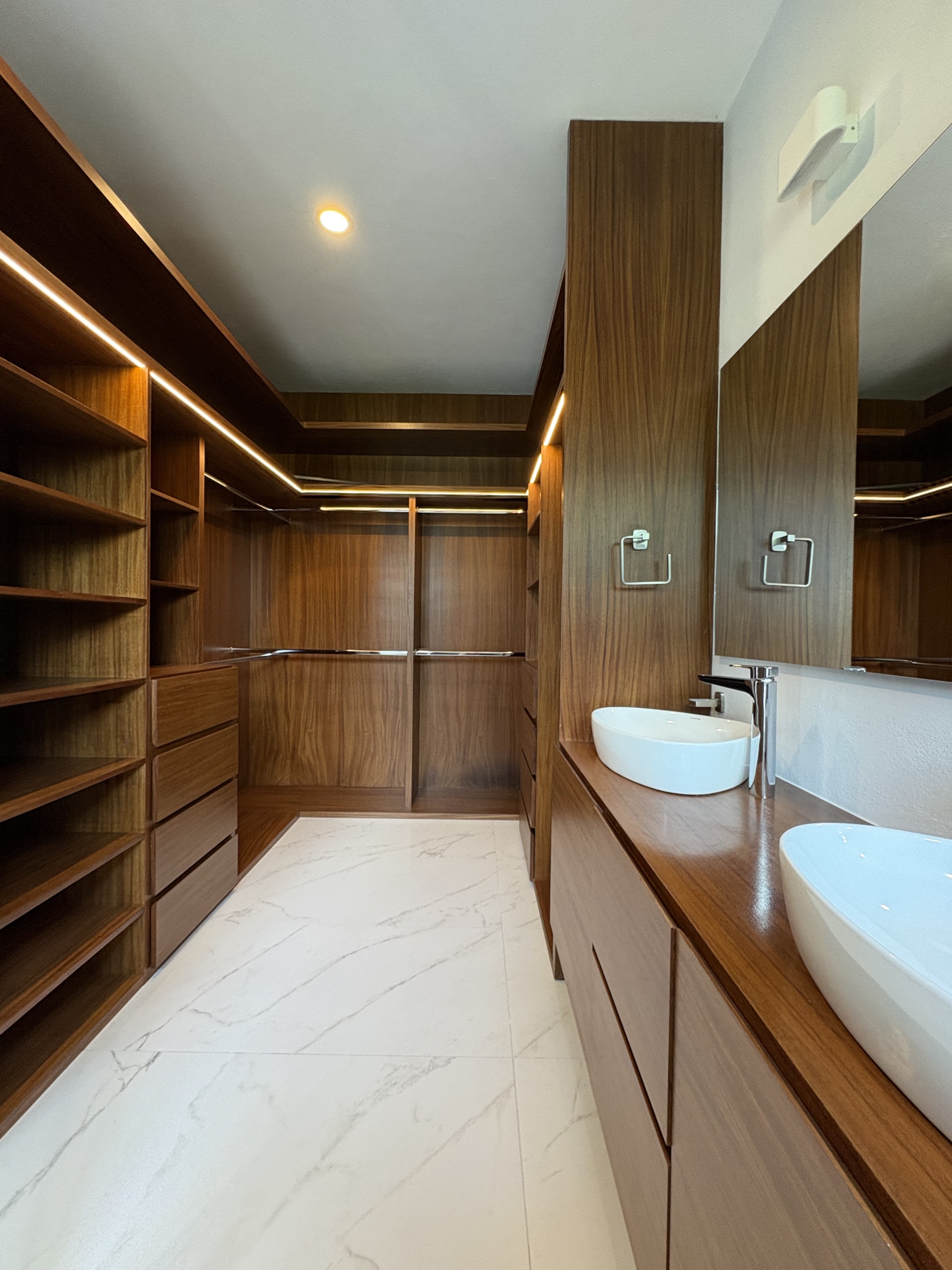 Dos recámaras secundarias, cada una con su baño completo y clóset. La recámara principal destaca por su amplitud, balcón con vista directa al parque, vestidor y baño completo.