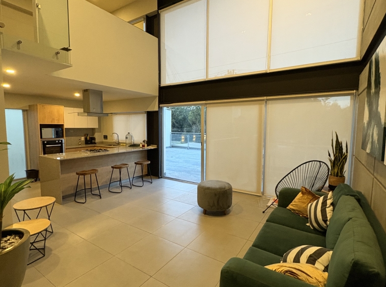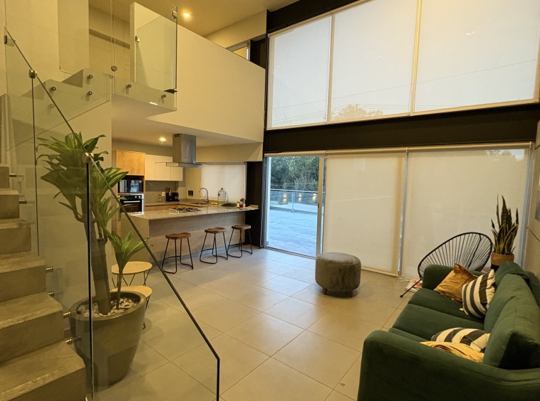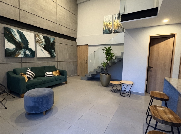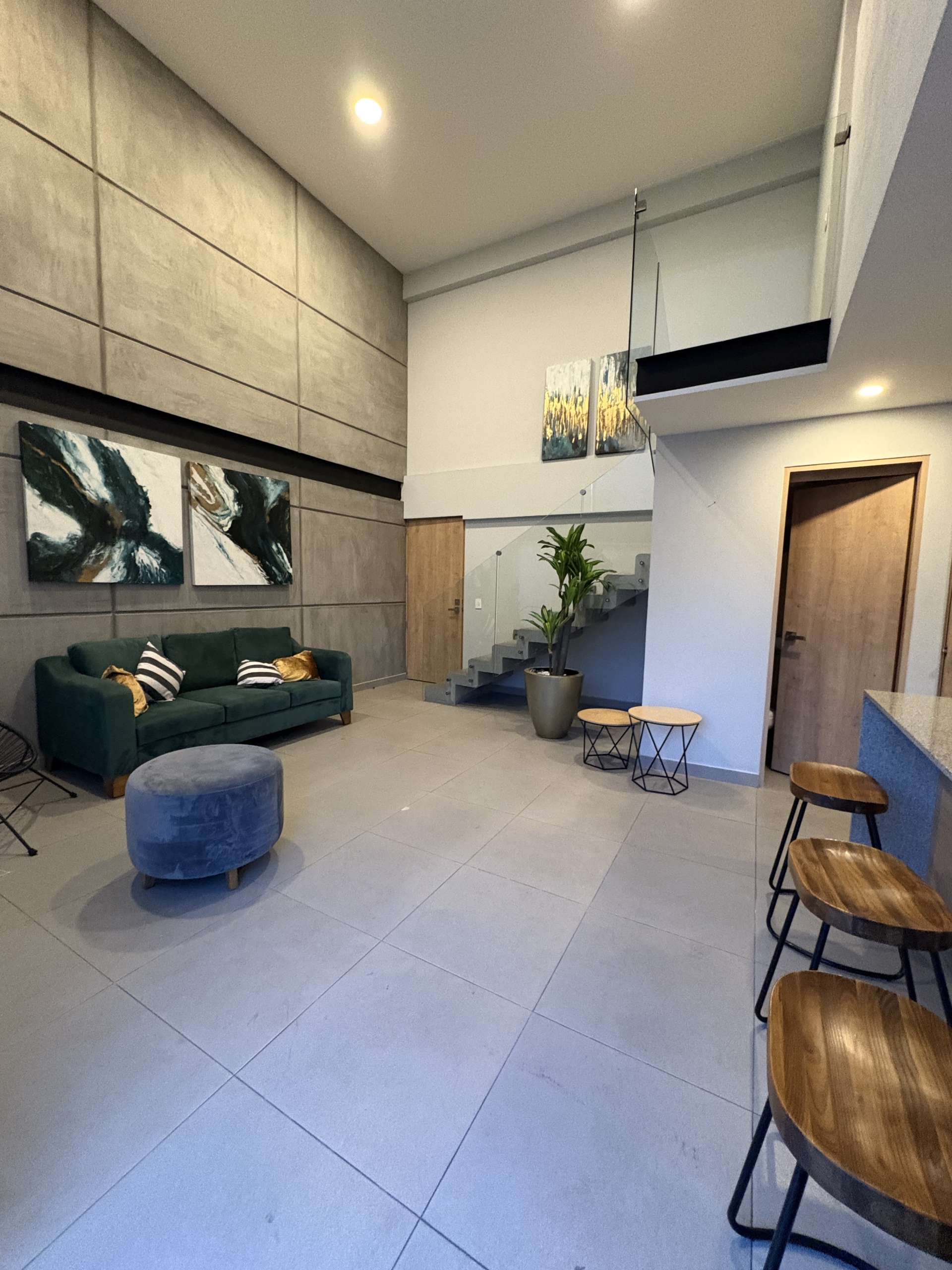 Moderno loft de doble altura ubicado en una torre exclusiva de pocas unidades, en nivel 1, con acceso controlado al elevador mediante tarjeta.