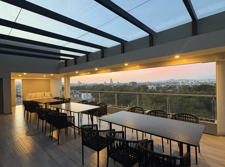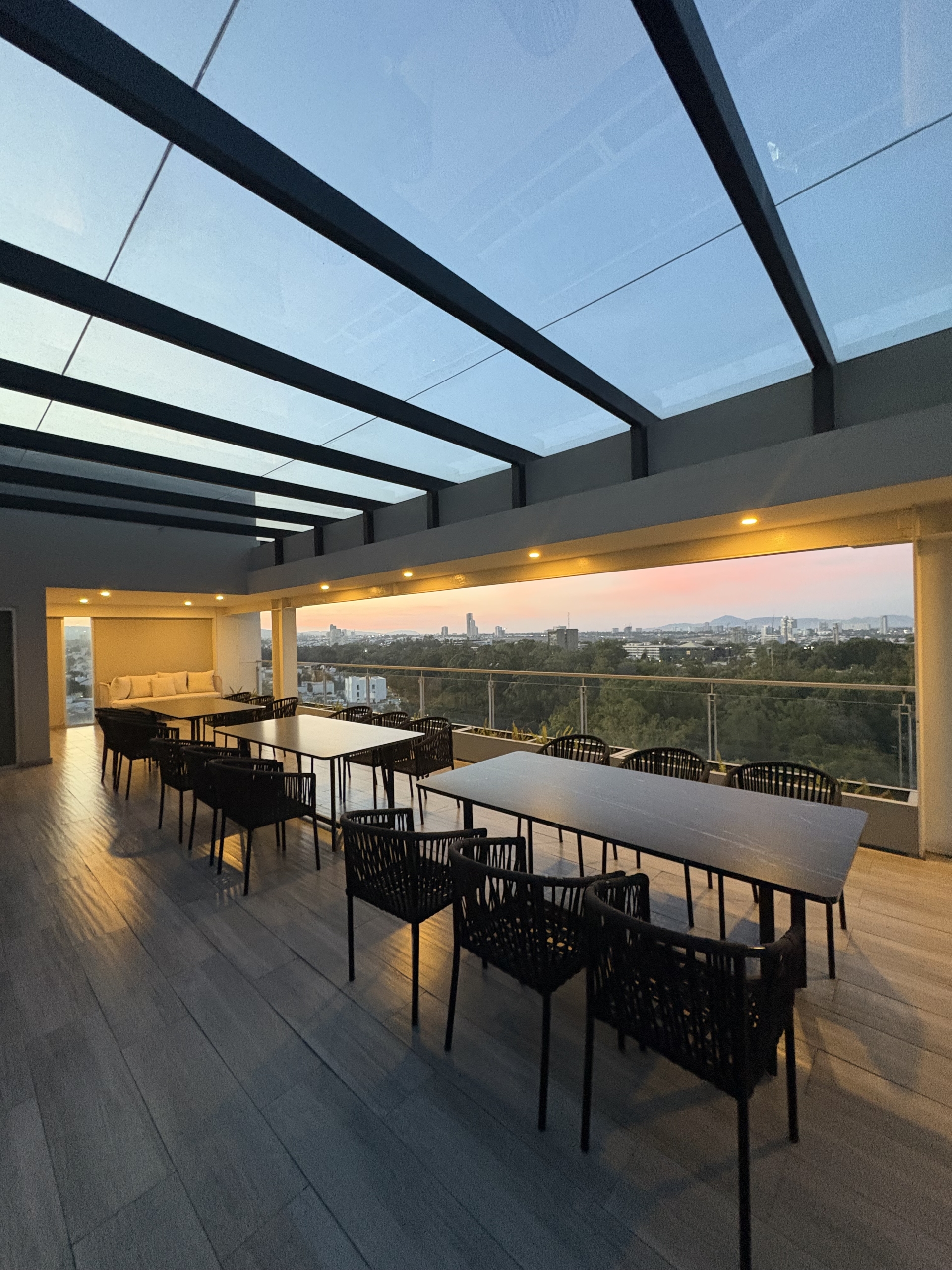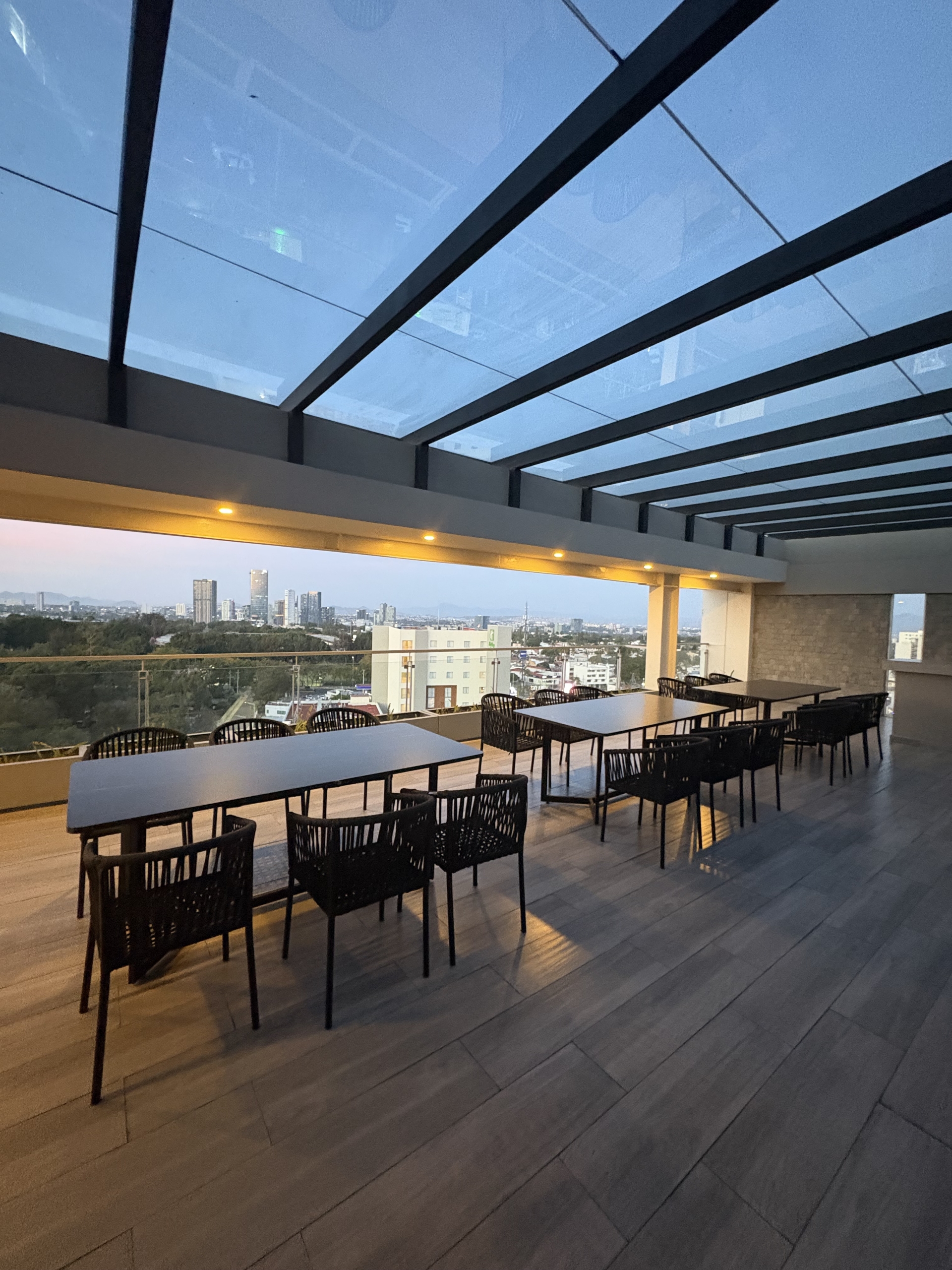 – Rooftop para eventos, equipado con mesas, tarja y baños